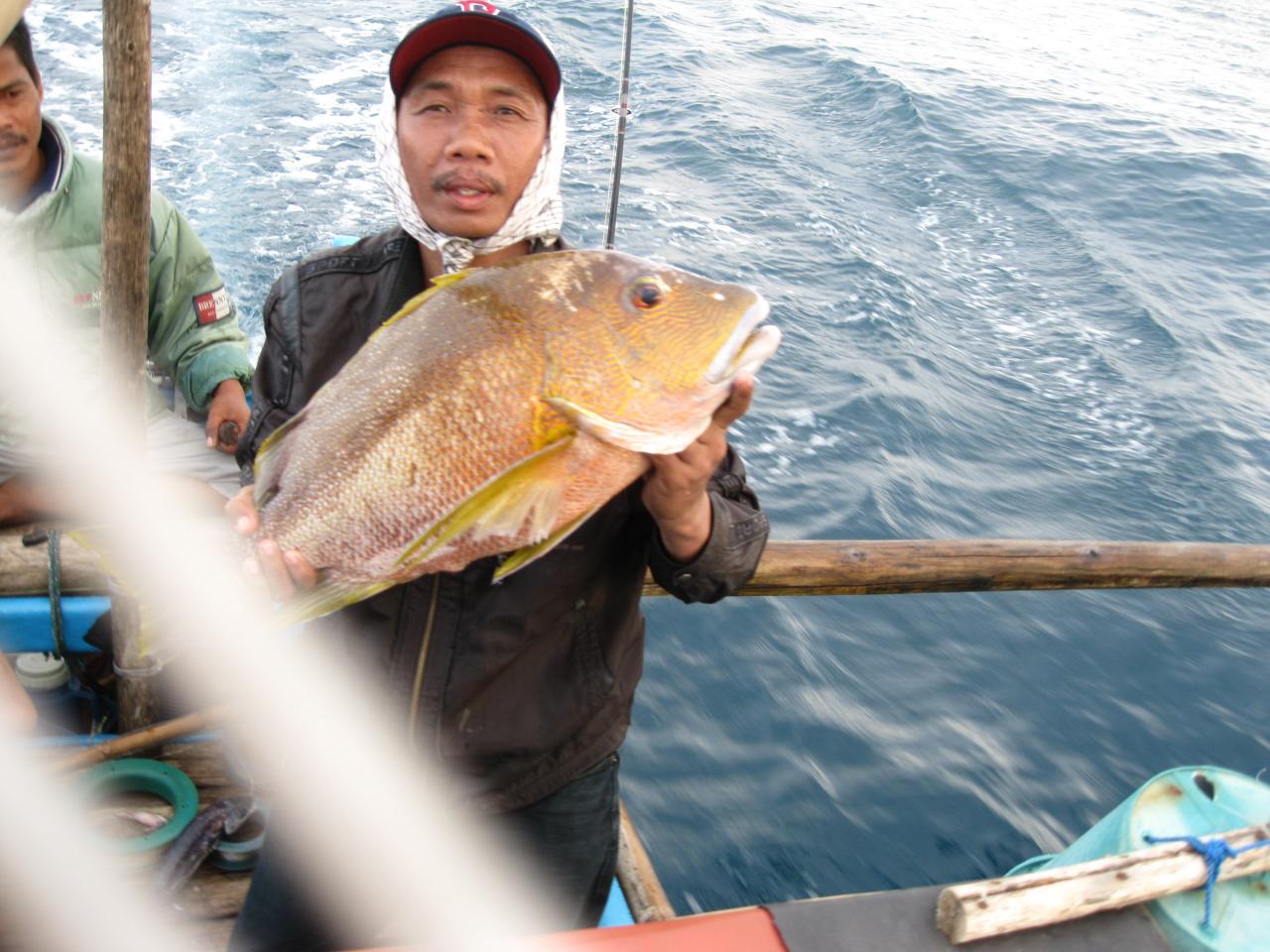 Hasil Akhir : Dengan kondisi air laut dingin, masih beruntung mendapat ikan setelapak tangan ke bawah sebanyak 1 coolbox dengan bonus 1 ekor ikan Mili (nama setempat) seberat 7,5 kg.
